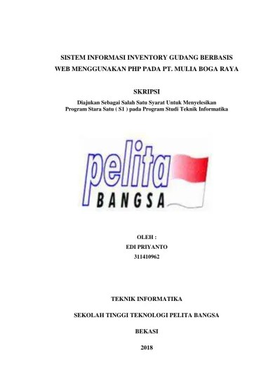 Design of inventory information system based on online. "perancangan sistem informasi persediaan barang (inventory. Perancangan sistem informasi inventory spare part elektronik. Telah mengerjakan revisi skripsi dengan judul : Disusun sebagai salah satu syarat menyelesaikan program .